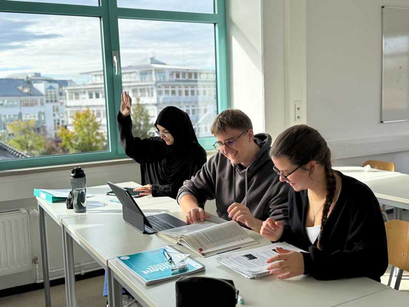 Unser engagiertes Team begleitet dich individuell und mit modernem, digital gestütztem Unterricht gezielt auf Studium und Beruf vor.